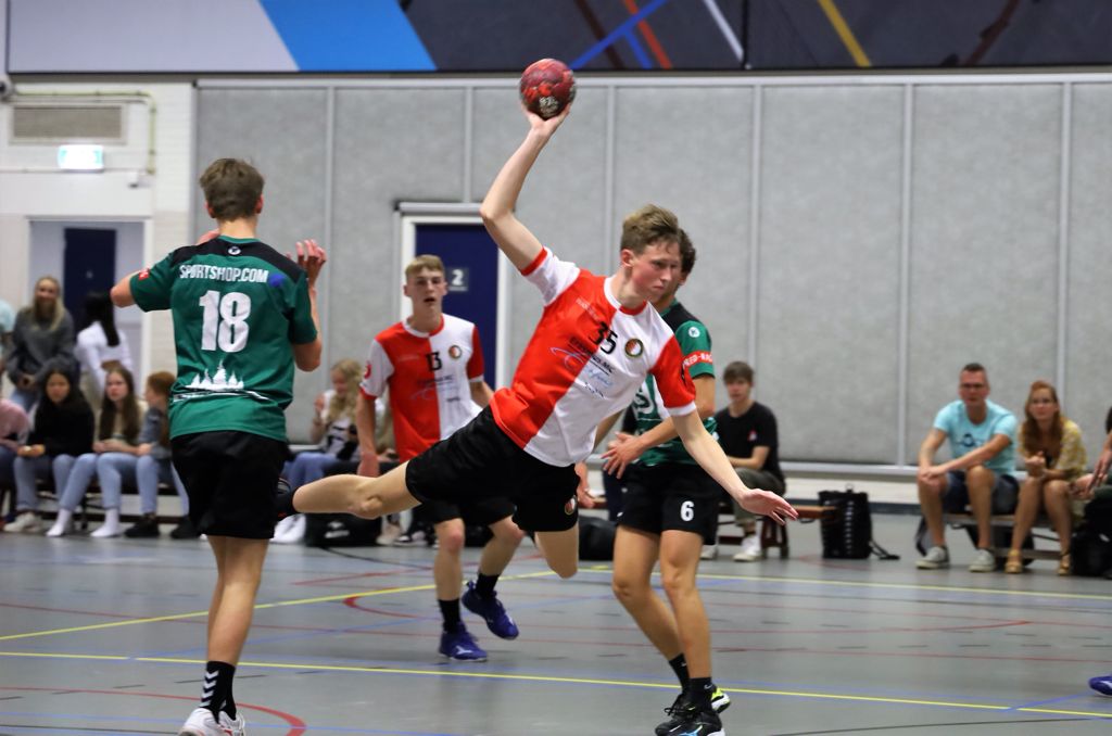 Met een compleet fitte selectie stonden de heren A van Feyenoord Handbal klaar voor de start van de competitie in de jeugddivisie. Bijna een jaar geen competitie en vandaag kunnen ze eindelijk beginnen. Na een voorbereiding waarin nipt verloren werd van WHC Hercules en gewonnen werd van Hellas ging het publiek er goed voor zitten.