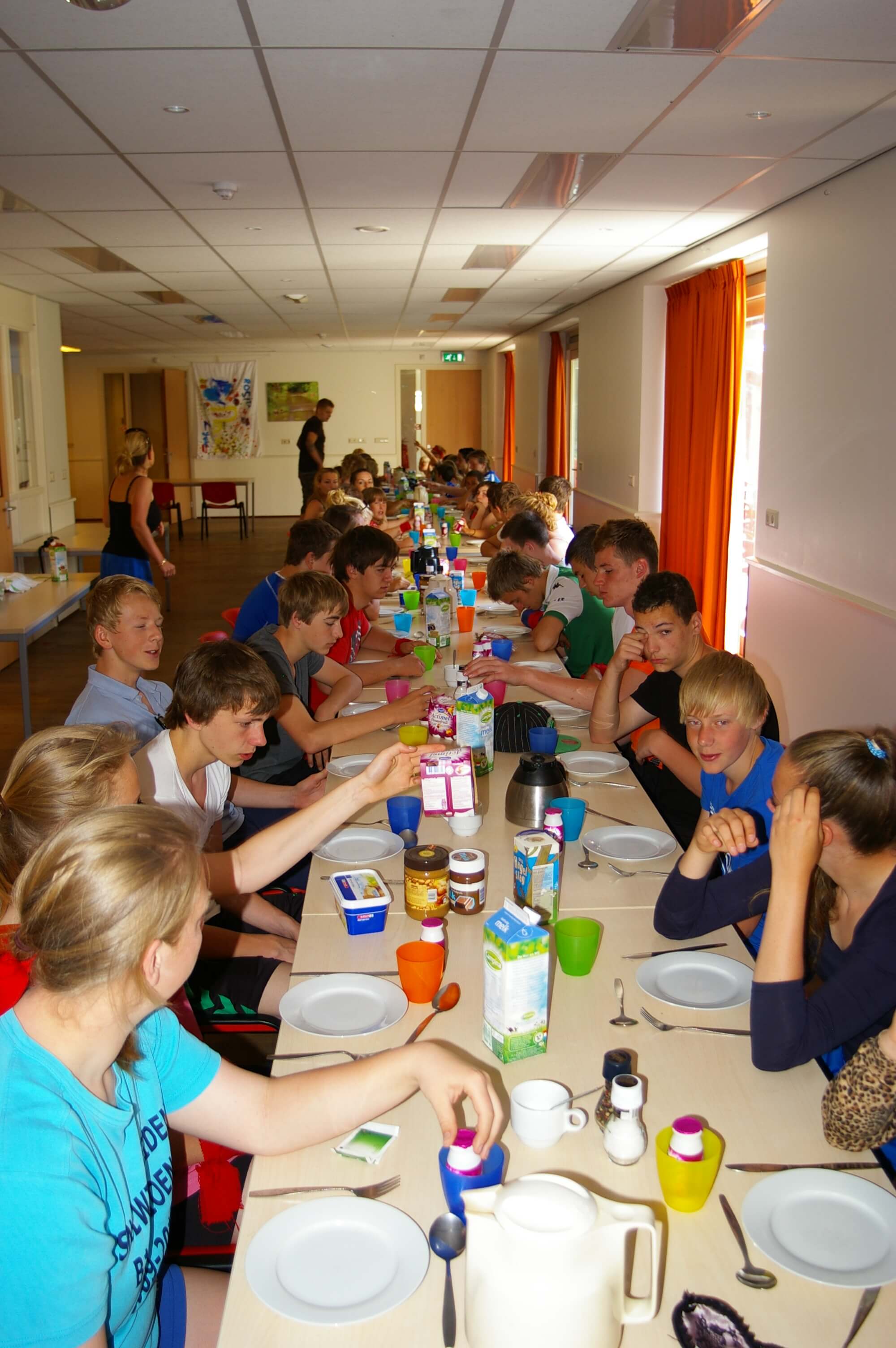 Na een lange dag vol activiteiten is het natuurlijk tijd om goed te eten. Vaak zijn het gerechten die gemakkelijk voor een grote groep te maken zijn, zoals nasi of macaroni. We hebben ook een kamp alleen maar soep gegeten!