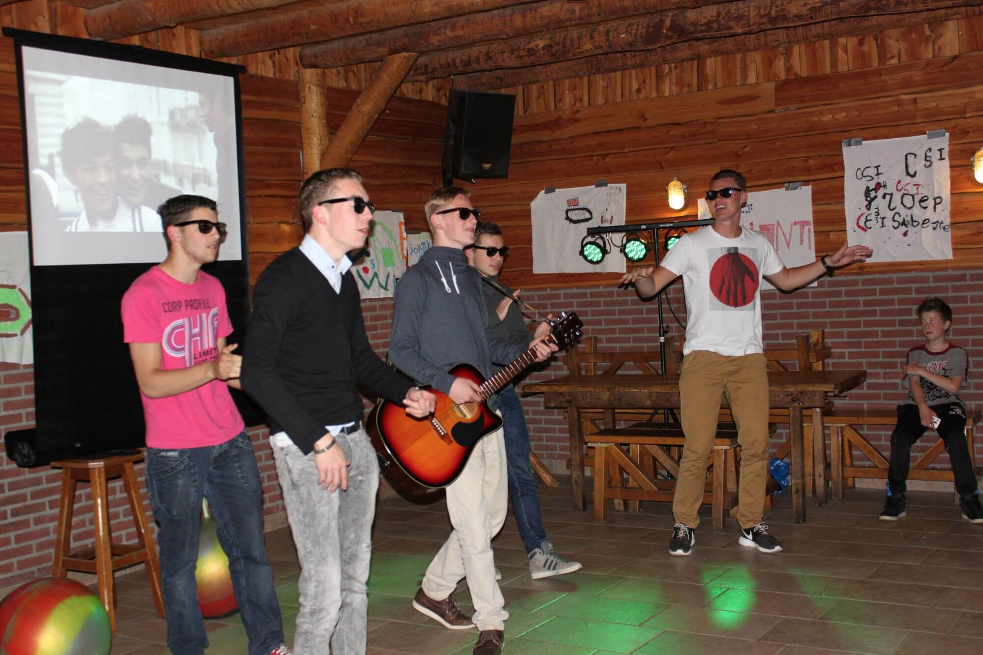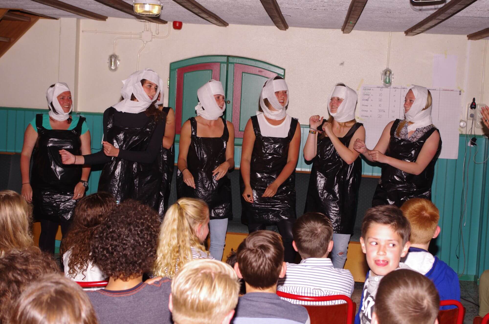 Tijd voor de laatste avond van het kamp alweer! Op zondagavond is het altijd bonte avond. Eerst hebben we een toneelavond, met gekke acts en echte presentatoren. Tijdens de bonte avond is er altijd plek om nieuwe kampgangers in het ootje te nemen of om je talenten te showen aan de hele vereniging. Na de optredens gaan alle stoelen opzij en de voeten van de vloer, het is tijd voor disco!